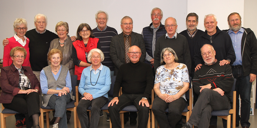 Sitzend v. l.: Marlies Thum, Hildegard Krane, Irmgard Bautz, Manfred Schurtzmann, Ulrike Krüner, Kurt Eitel.