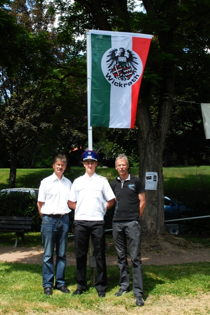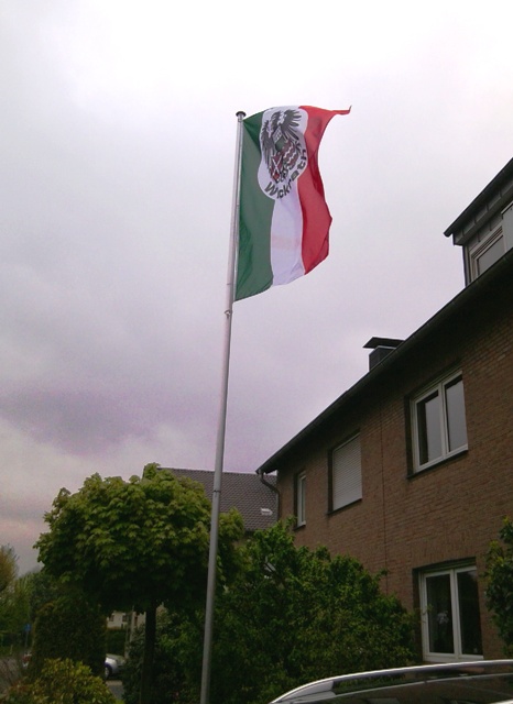 Bei unserem Ehrenvorsitzenden Ernst Heinen weht die erste, neue Wickrath-Fahne, die hier für 20,00 € bestellt werden kann.! |