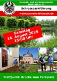 | 16. Aug | Rainer Kühn unser Vorsitzender des Geschichtsvereins und Parkführer hatte heute wieder zur großen Runde durch den Park eingeladen. Ca. 25 Interessierte sind dem Aufruf gefolgt und haben aufmerksam den Erklärungen zugehört und auch einige Bilder mit nachhause nehmen können. Diesmal hatte unsere Einladung besonderes Interesse geweckt und die Führung wurde durch drei Pressevertreter ergänzt! |