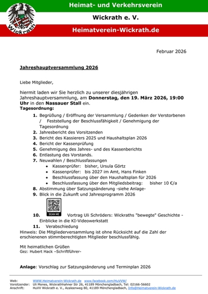 Hier laden Sie sich den HuVV-Kalender 2026 Hier laden Sie sich den Wickrather Veranstaltungskalender 2026 |