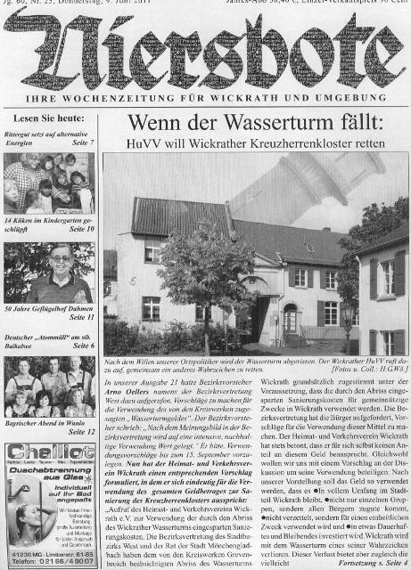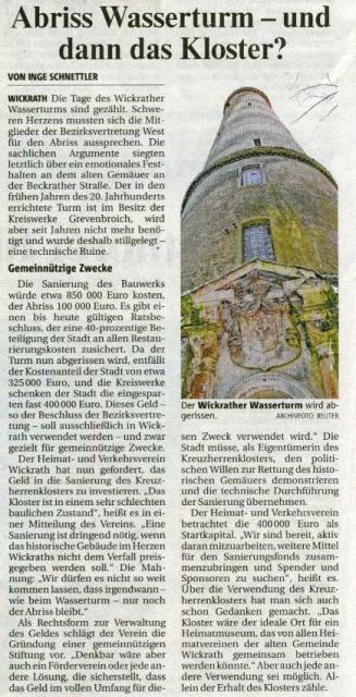 Westdeutsche Zeitung zum Wasserturmabriss